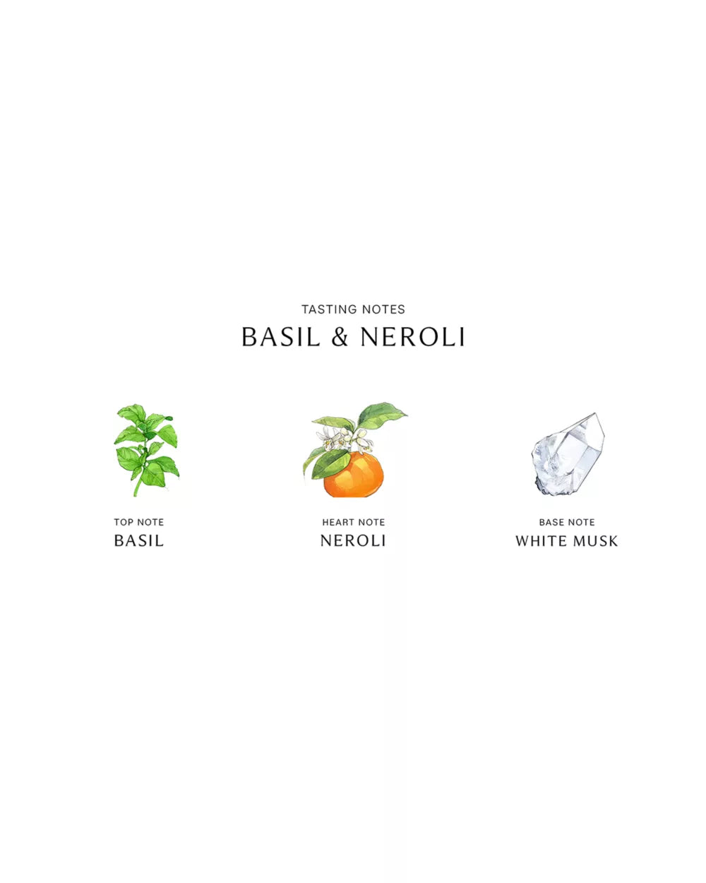 - Top note: basil grand vert- Middle note: neroli- Base note: white musk