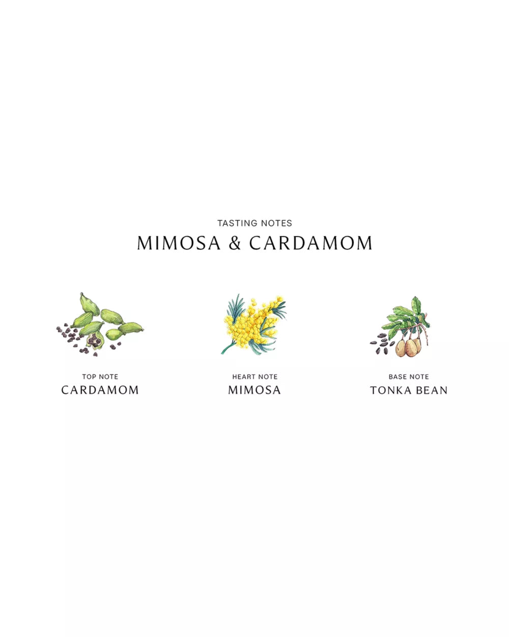 - Top note: cardamom- Middle note: mimosa- Base note: tonka bean